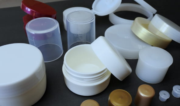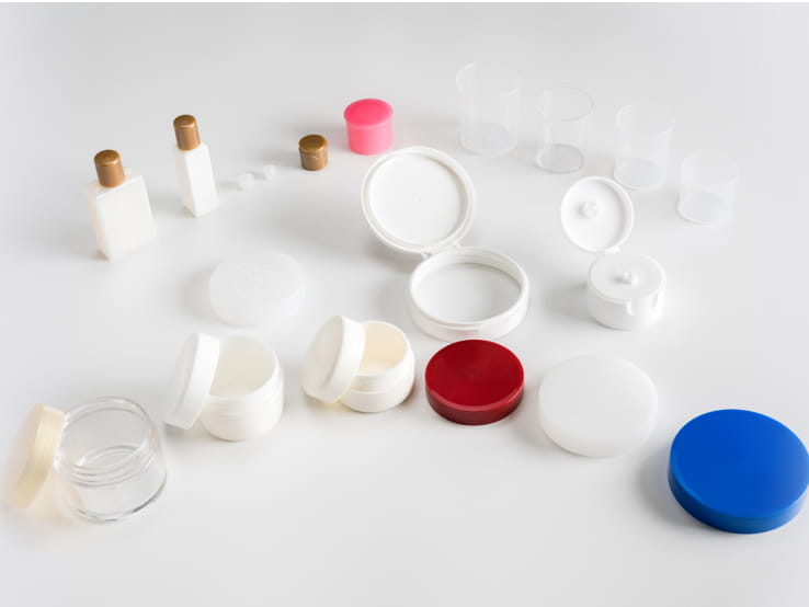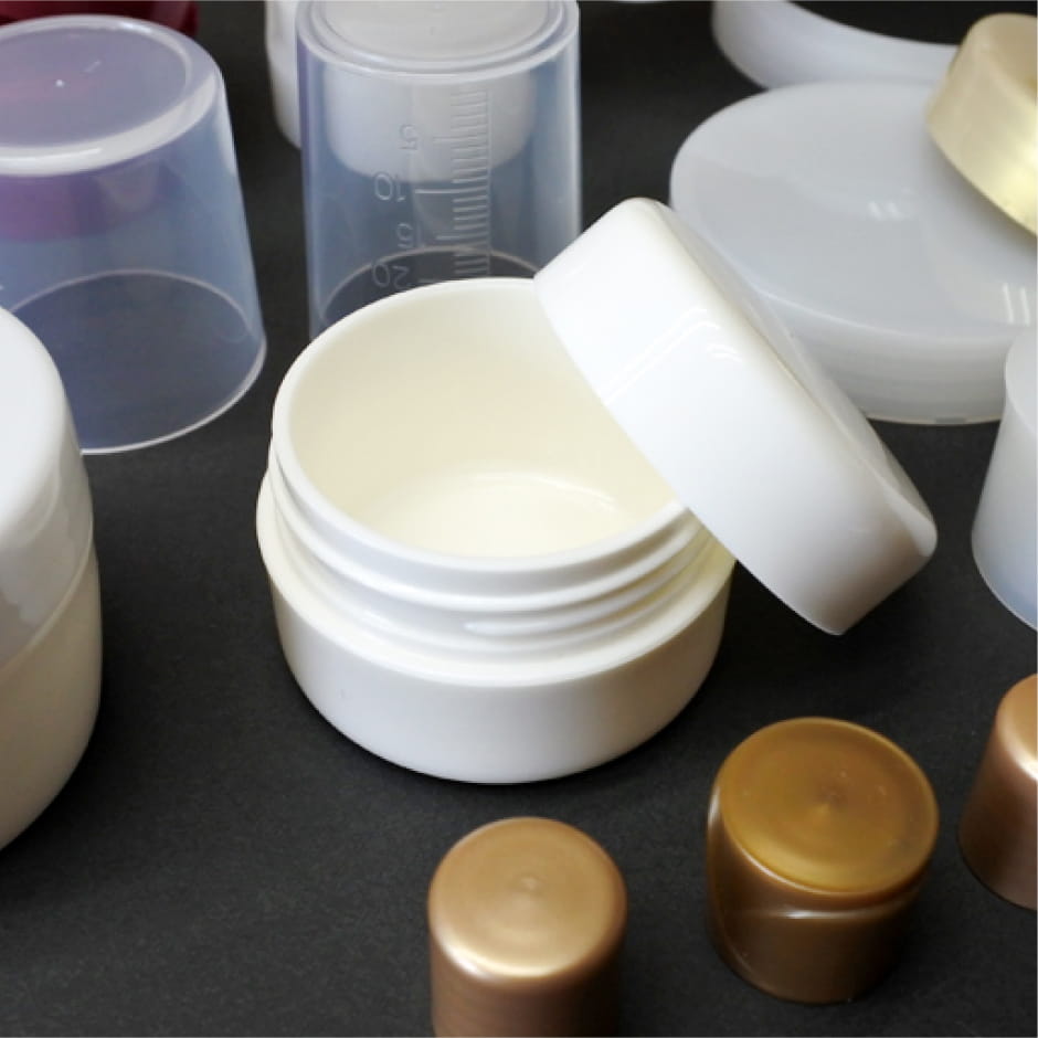 化粧品キャップをはじめとした容器類、工業用プラスチック部品、建築・土木関連部材など、幅広い分野の射出成形に対応しています。